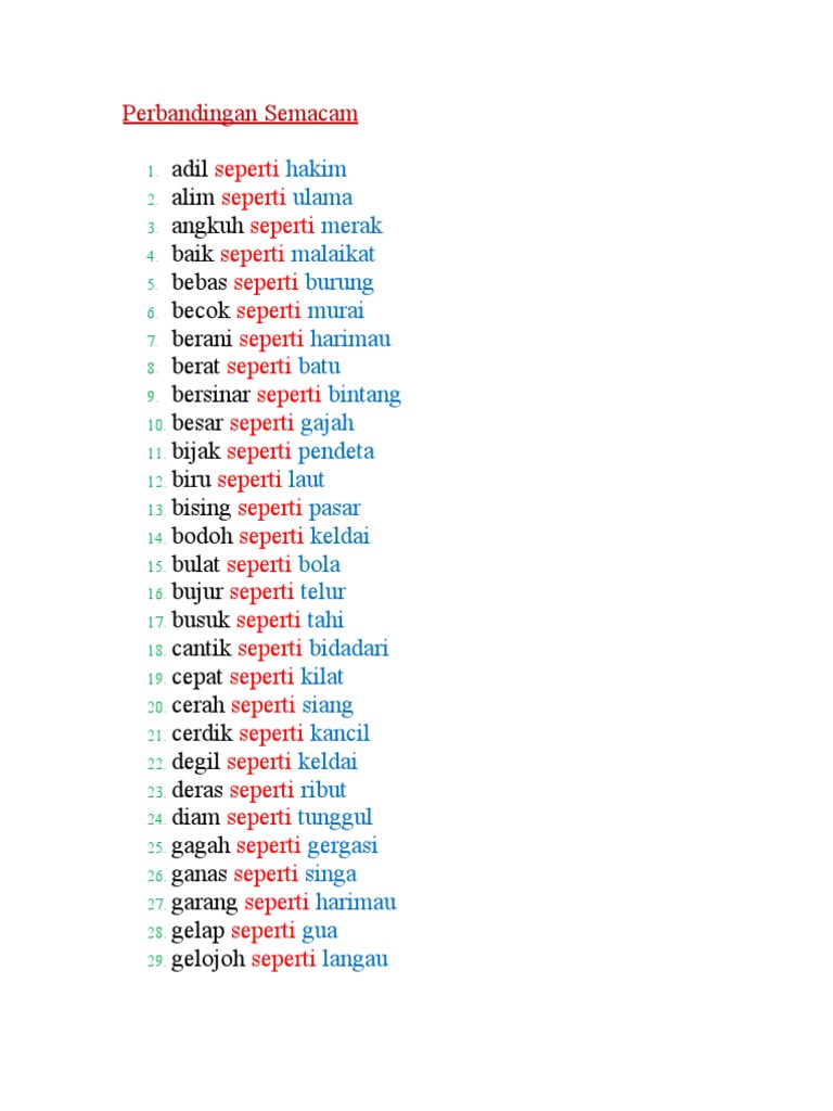 Antara contoh bandingan semacam ialah- adil seperti hakim alim seperti ulama. Lembaran kerja 3 Bandingan Semacam. Bebas seperti burung 6.